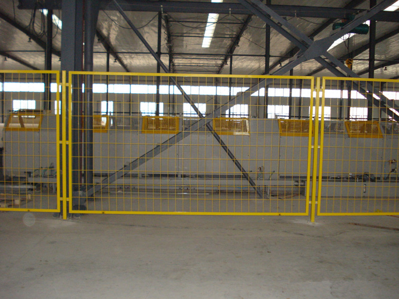 倉庫圍欄又稱之為車間隔離柵、車間護(hù)欄網(wǎng)、倉庫隔離柵等。那為什么稱黃色倉庫圍欄呢,因?yàn)閲鷻谠诒砻嫣幚頃r(shí)浸塑和噴塑用黃色粉末,